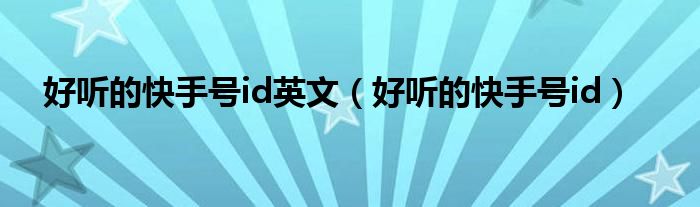 大家好,小晋来为大家解答以下问题,关于好听的快手号id英文,好听的快手号id很多人还不知道,今天让我们一起来看看吧!