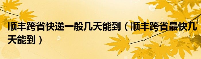 大家好,小晋来为大家解答以下问题,关于顺丰跨省快递一般几天能到,顺丰跨省最快几天能到很多人还不知道,今天让我们一起来看看吧!