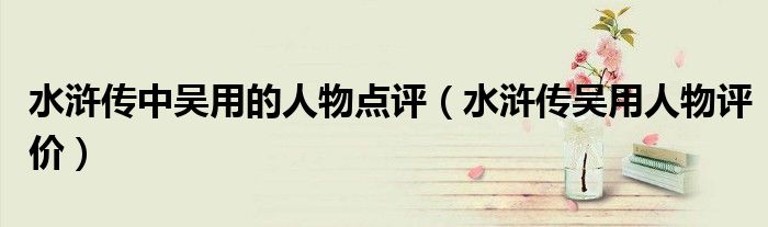 关于水浒传中吴用的人物点评,水浒传吴用人物评价这个很多人还不知道,今天菲菲来为大家解答以上的问题,现在让我们一起来看看吧!