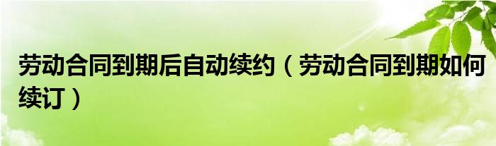 关于劳动合同到期后自动续约,劳动合同到期如何续订这个很多人还不知道,今天菲菲来为大家解答以上的问题,现在让我们一起来看看吧!