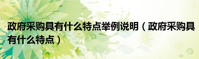 关于政府采购具有什么特点举例说明,政府采购具有什么特点这个很多人还不知道,今天菲菲来为大家解答以上的问题,现在让我们一起来看看吧!