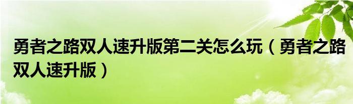 勇者之路双人速升版第二关怎么玩(勇者之路双人速升版)