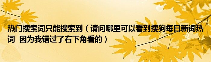 关于热门搜索词只能搜索到,请问哪里可以看到搜狗每日新词热词 因为我错过了右下角看的这个很多人还不知道,今天菲菲来为大家解答以上的问题,现在让我们一起来看看吧!
