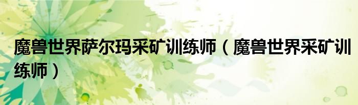 魔兽世界萨尔玛采矿训练师(魔兽世界采矿训练师)