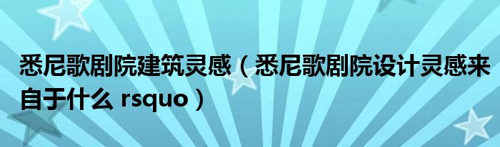 悉尼歌剧院建筑灵感(悉尼歌剧院设计灵感来自于什么 rsquo)