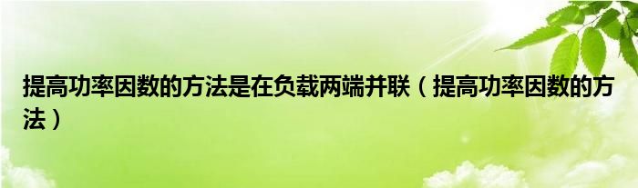 关于提高功率因数的方法是在负载两端并联,提高功率因数的方法这个很多人还不知道,今天菲菲来为大家解答以上的问题,现在让我们一起来看看吧!