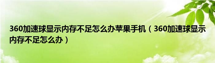 360加速球显示内存不足怎么办苹果手机(360加速球显示内存不足怎么办)