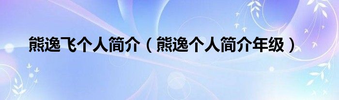 大家好,小晋来为大家解答以下问题,关于熊逸飞个人简介,熊逸个人简介年级很多人还不知道,今天让我们一起来看看吧!