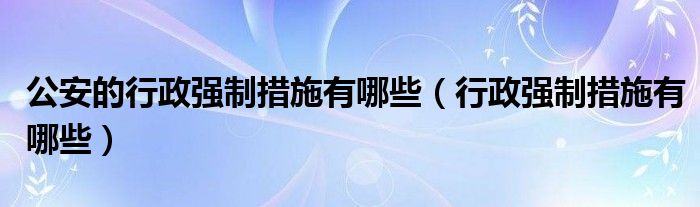 关于公安的行政强制措施有哪些,行政强制措施有哪些这个很多人还不知道,今天菲菲来为大家解答以上的问题,现在让我们一起来看看吧!