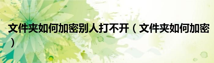 大家好,小飞来为大家解答以上问题,文件夹如何加密别人打不开,文件夹如何加密很多人还不知道,现在让我们一起来看看吧!