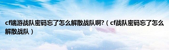 关于cf端游战队密码忘了怎么解散战队啊?,cf战队密码忘了怎么解散战队这个很多人还不知道,今天菲菲来为大家解答以上的问题,现在让我们一起来看看吧!