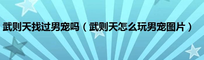 武则天找过男宠吗(武则天怎么玩男宠图片)