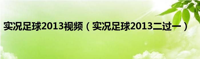 实况足球2013视频,实况足球2013二过一这个很多人还不知道,小飞来为大家解答以上的问题。现在让我们一起来看看吧!