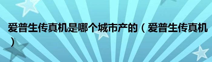 爱普生传真机是哪个城市产的,爱普生传真机很多人还不知道,乐乐来为大家解答以上问题,现在让我们一起来看看吧!