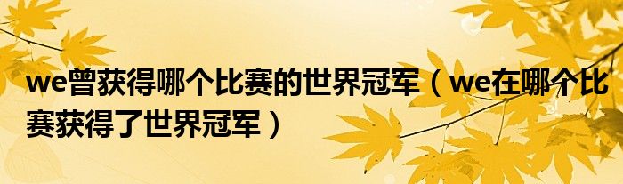 we曾获得哪个比赛的世界冠军(we在哪个比赛获得了世界冠军)