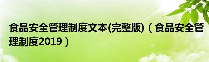 关于食品安全管理制度文本(完整版),食品安全管理制度2019这个很多人还不知道,今天菲菲来为大家解答以上的问题,现在让我们一起来看看吧!