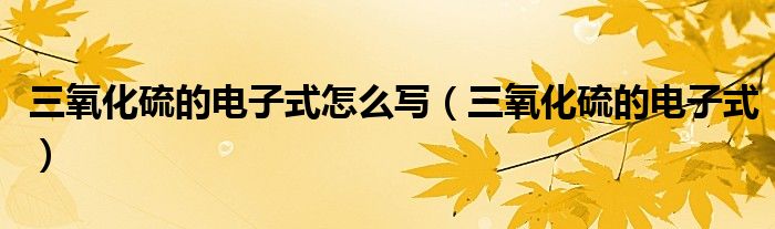三氧化硫的电子式怎么写,三氧化硫的电子式这个很多人还不知道,小飞来为大家解答以上的问题。现在让我们一起来看看吧!