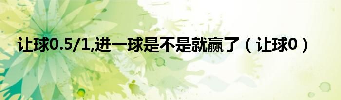 大家好,小晋来为大家解答以下问题,关于让球0.5/1,进一球是不是就赢了,让球0很多人还不知道,今天让我们一起来看看吧!