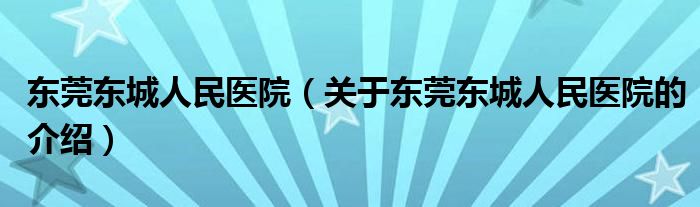 大家好,今天小乐来为大家解答以上的问题。东莞东城人民医院,关于东莞东城人民医院的介绍很多人还不知道,现在让我们一起来看看吧!