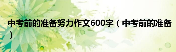 大家好,小晋来为大家解答以下问题,关于中考前的准备努力作文600字,中考前的准备很多人还不知道,今天让我们一起来看看吧!