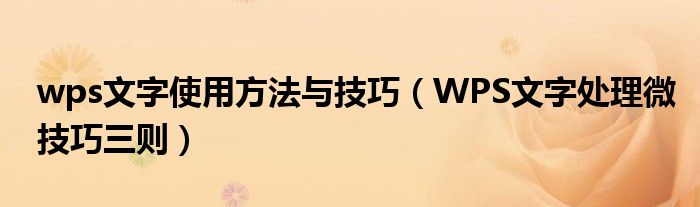 wps文字使用方法与技巧(WPS文字处理微技巧三则)