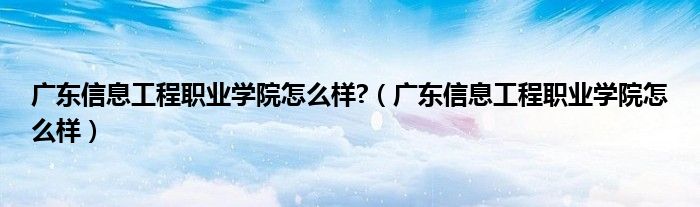广东信息工程职业学院怎么样?(广东信息工程职业学院怎么样)