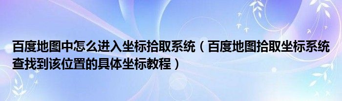大家好,今天小悦来为大家解答以上问题。百度地图中怎么进入坐标拾取系统,百度地图拾取坐标系统查找到该位置的具体坐标教程很多人还不知道,现在让我们一起来看看吧!