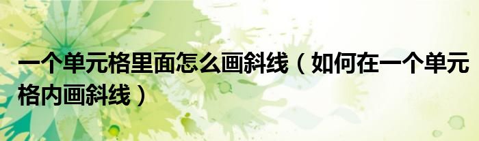 关于一个单元格里面怎么画斜线,如何在一个单元格内画斜线这个很多人还不知道,今天菲菲来为大家解答以上的问题,现在让我们一起来看看吧!