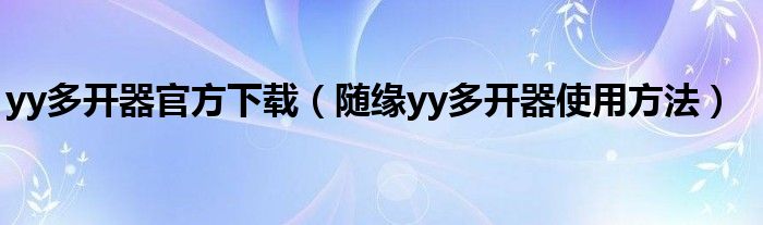 大家好,今天小悦来为大家解答以上问题。yy多开器官方下载,随缘yy多开器使用方法很多人还不知道,现在让我们一起来看看吧!