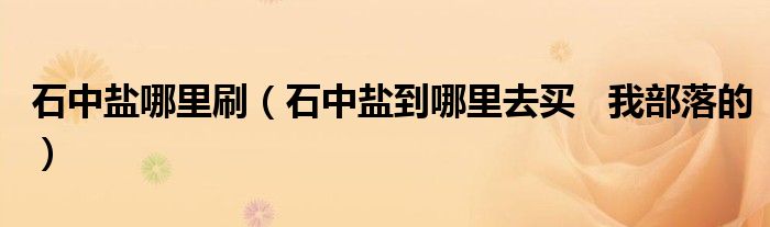 关于石中盐哪里刷,石中盐到哪里去买 我部落的这个很多人还不知道,今天菲菲来为大家解答以上的问题,现在让我们一起来看看吧!