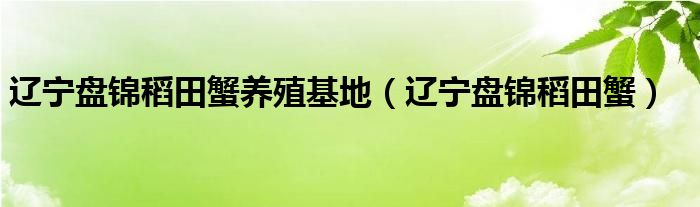 辽宁盘锦稻田蟹养殖基地(辽宁盘锦稻田蟹)