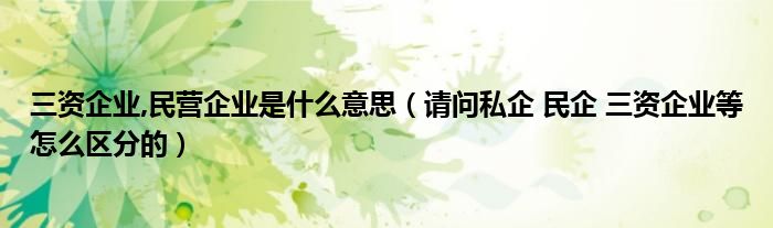 关于三资企业,民营企业是什么意思,请问私企 民企 三资企业等怎么区分的这个很多人还不知道,今天菲菲来为大家解答以上的问题,现在让我们一起来看看吧!