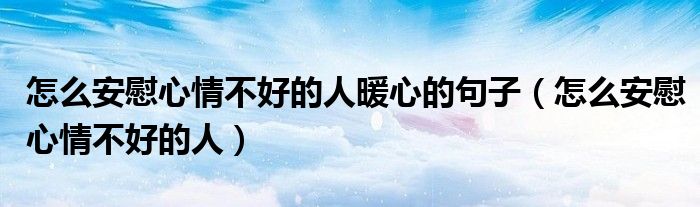 关于怎么安慰心情不好的人暖心的句子,怎么安慰心情不好的人这个很多人还不知道,今天菲菲来为大家解答以上的问题,现在让我们一起来看看吧!