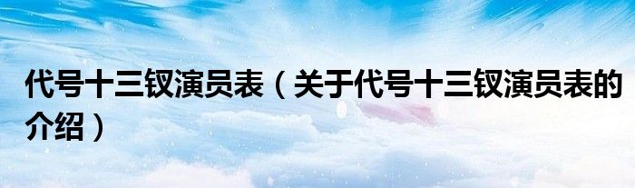代号十三钗演员表(关于代号十三钗演员表的介绍)
