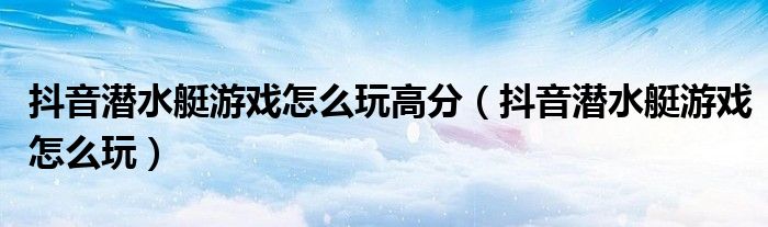 大家好,雨雨来为大家解答以上问题,抖音潜水艇游戏怎么玩高分,抖音潜水艇游戏怎么玩很多人还不知道,现在让我们一起来看看吧!
