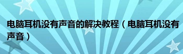 电脑耳机没有声音的解决教程(电脑耳机没有声音)