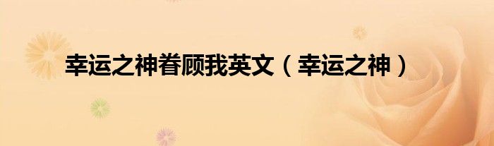 关于幸运之神眷顾我英文,幸运之神这个很多人还不知道,今天菲菲来为大家解答以上的问题,现在让我们一起来看看吧!