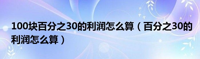 大家好,小晋来为大家解答以下问题,关于100块百分之30的利润怎么算,百分之30的利润怎么算很多人还不知道,今天让我们一起来看看吧!