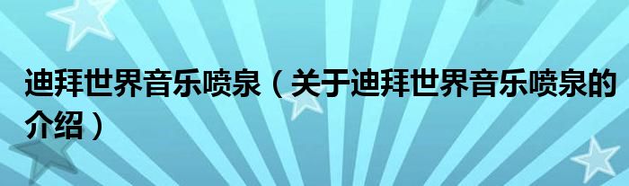 大家好,今天小乐来为大家解答以上的问题。迪拜世界音乐喷泉,关于迪拜世界音乐喷泉的介绍很多人还不知道,现在让我们一起来看看吧!