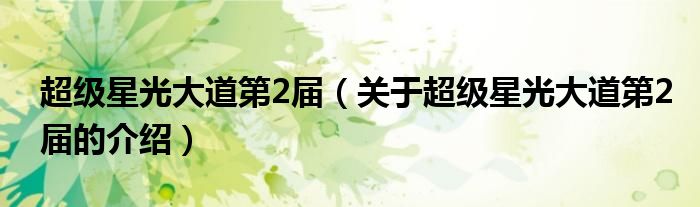 大家好,今天小乐来为大家解答以上的问题。超级星光大道第2届,关于超级星光大道第2届的介绍很多人还不知道,现在让我们一起来看看吧!