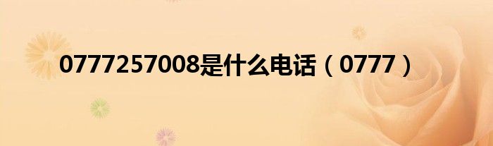 关于0777257008是什么电话,0777这个很多人还不知道,今天菲菲来为大家解答以上的问题,现在让我们一起来看看吧!