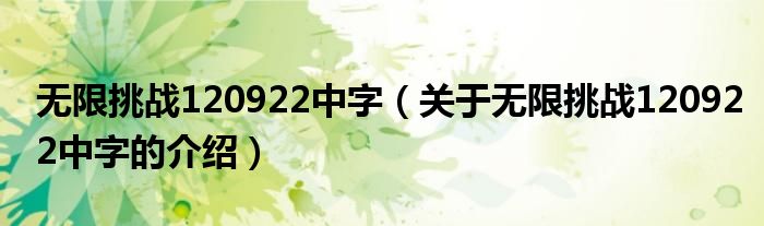 无限挑战120922中字(关于无限挑战120922中字的介绍)