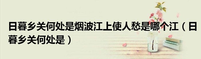 关于日暮乡关何处是烟波江上使人愁是哪个江,日暮乡关何处是这个很多人还不知道,今天菲菲来为大家解答以上的问题,现在让我们一起来看看吧!