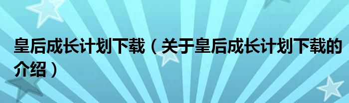 皇后成长计划下载(关于皇后成长计划下载的介绍)