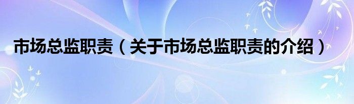 市场总监职责(关于市场总监职责的介绍)
