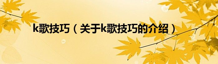 大家好,小都来为大家解答以上的问题。k歌技巧,关于k歌技巧的介绍很多人还不知道,现在让我们一起来看看吧!