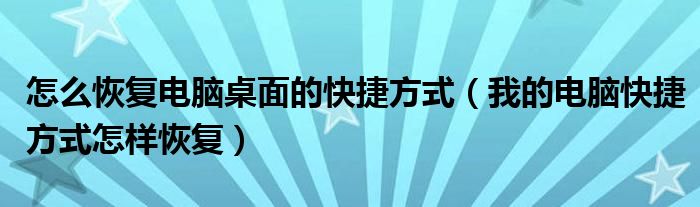 关于怎么恢复电脑桌面的快捷方式,我的电脑快捷方式怎样恢复这个很多人还不知道,今天菲菲来为大家解答以上的问题,现在让我们一起来看看吧!