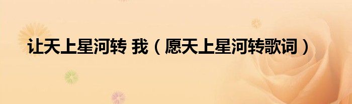 大家好,小晋来为大家解答以下问题,关于让天上星河转 我,愿天上星河转歌词很多人还不知道,今天让我们一起来看看吧!