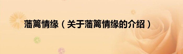 大家好,小都来为大家解答以上的问题。藩篱情缘,关于藩篱情缘的介绍很多人还不知道,现在让我们一起来看看吧!
