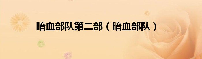 暗血部队第二部,暗血部队这个很多人还不知道,小飞来为大家解答以上的问题。现在让我们一起来看看吧!
